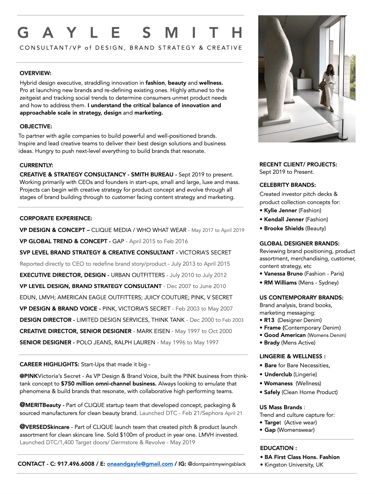 VP LEVEL CONSULTANT TO CEO'S • TREND SPECIALIST • BRAND STRATEGIST • CREATIVE DIRECTOR • DESIGNER & STYLIST